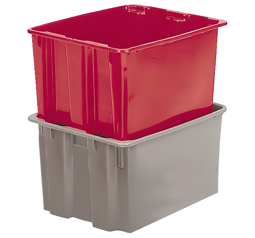 Our Stack-N-Nest tubs, designed for maximum space utilization, handle the tremendous amounts of incoming and outgoing mail that today's distribution centers encounter. The distribution containers stack when full, with or without covers, and nest when empty, at alternating 180° positions.