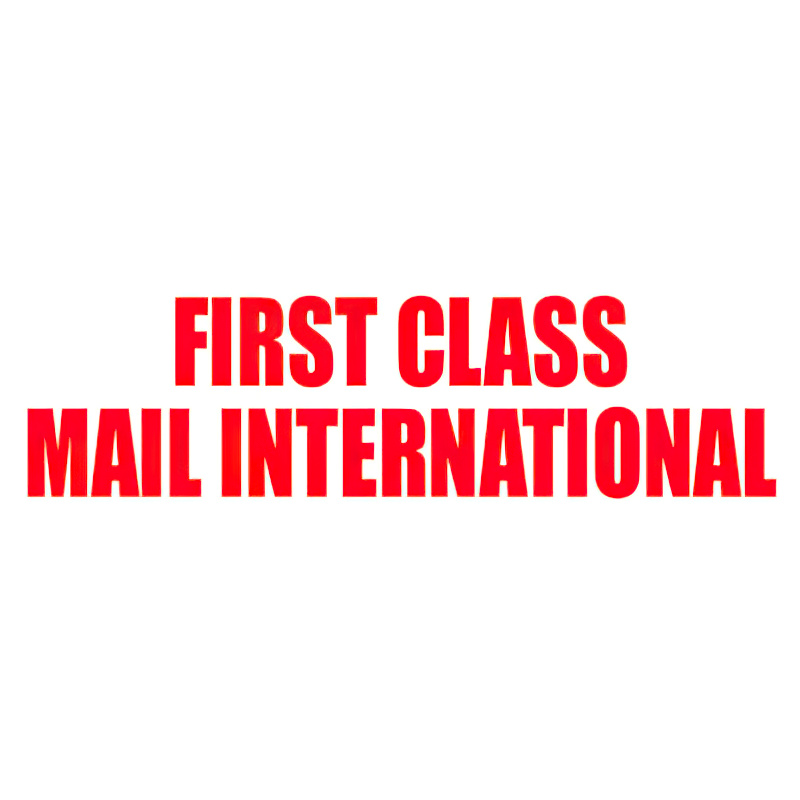 TYPE: STAMP. Stock Pre-Inked Stamp. IMPRESSION: "FIRST-CLASS MAIL INTERNATIONAL (FORMERLY ECONOMY MAIL LETTER POST)." IMPRESSION SIZE: 1/2"H x 1-11/16"W. INK COLOR: Black MOUNT: Made with an ergonomically designed plastic handle and features a retractable frame, eliminating the need for messy stamp pads and keeping stamps out of contact with your desk. Gives thousands of impressions before needing to be re-inked (). ACCESSORIES: Refill Ink, model numbers N1024685-N1024694. SHIPS: USPS.