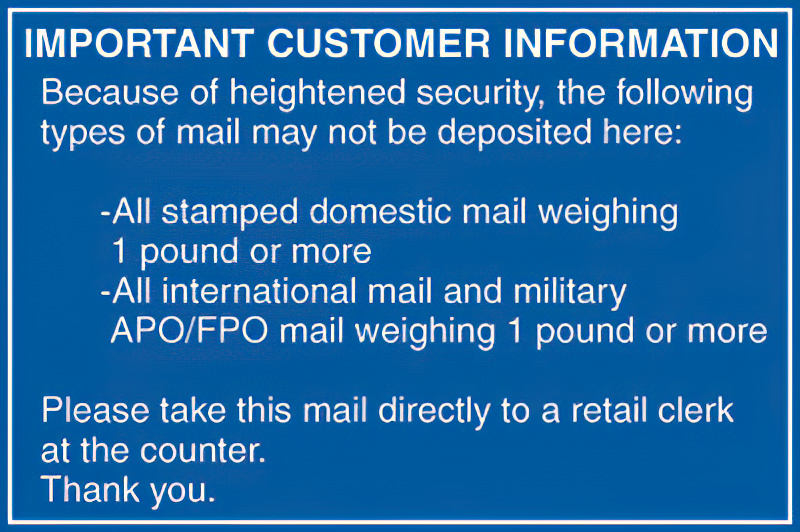 Counter Signs are not authorized for USPS Lobbies. Reference USPS National Signage Program.If you would like any of these signs customized by our sign shop, please call a Customer Service Representative today.