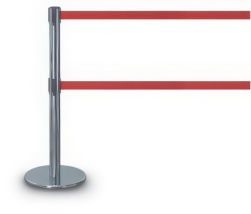 Prevent line ducking, block restricted areas, and keep children in line with the new innovative double tape tensabarriers. In addition, the units lower tape allows the visually impaired to detect where the barriers are located. The units are designed to comply with ADA/UFAS regulations. The elegance of the post will last for years with the black ABS plastic base cover that will not scuff.The portable unit allows for easy line configuration. Units measure 13 1/2" diameter, 39"H, 7 feet 6 inch tape length.