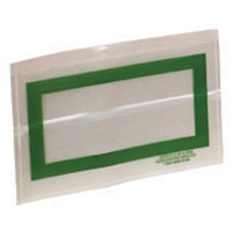 These press-on envelopes can be applied by simplying peeling and sticking. The aggesive adhesive is strong enough to stick to any clean surface. These envelopes can be used on over the road containers, gaylords, postal hampers, tubs, placards, or mail containers. The front loading design act as an open pocket for repeated insertion and retrieval of contents. On all envelopes, the first dimension listed is the open end. Units are priced per thousand pieces.