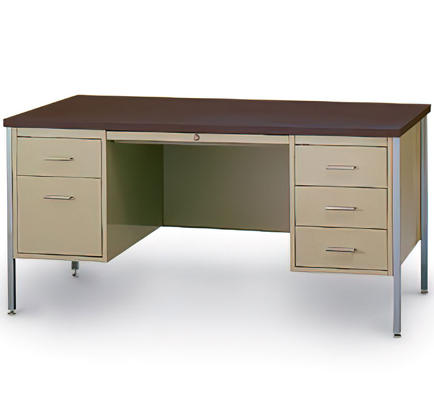 These durable steel desks are ideal workstations for workroom floor supervisors both in the Plant and Post Office. Double pedestal desks rise off the floor for easy cleaning underneath.