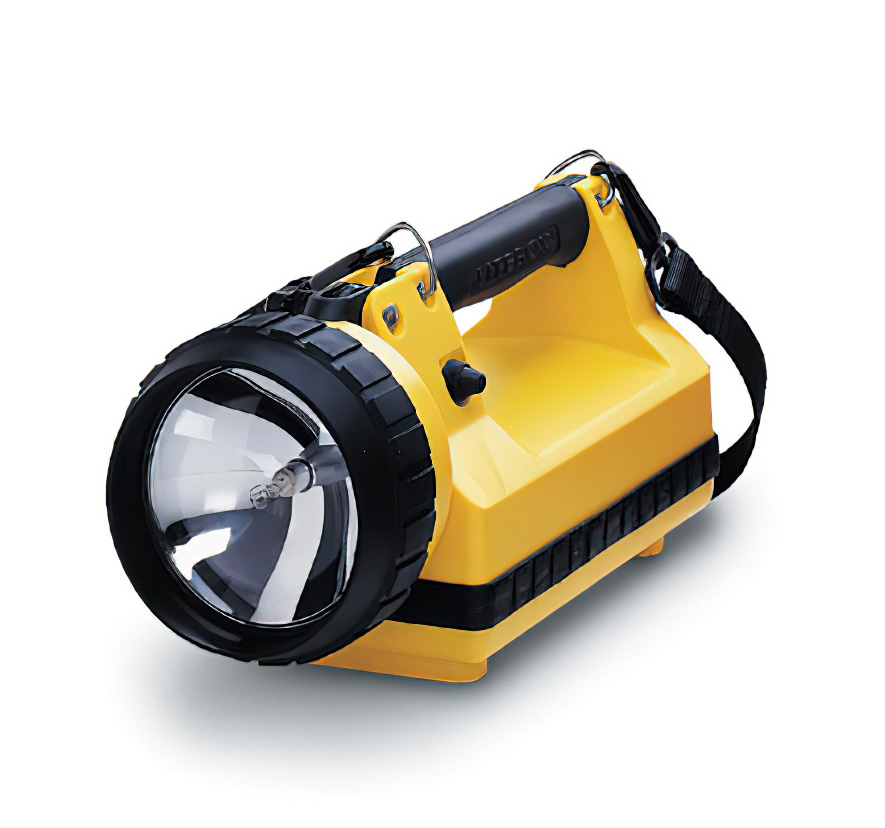 High-powered spotlights provide serious lighting in a hurry with rechargeable batteries to make sure it's ready when needed. The bodies of the flashlights are constructed of high impact ABS plastic while the impact bumper, lens ring, and cushioned grip handle are all rubberized. Each flashlight includes a 120 volt AC charger, 12 volt DC charger, shoulder strap, and mounting rack. FM approved for hazardous locations.