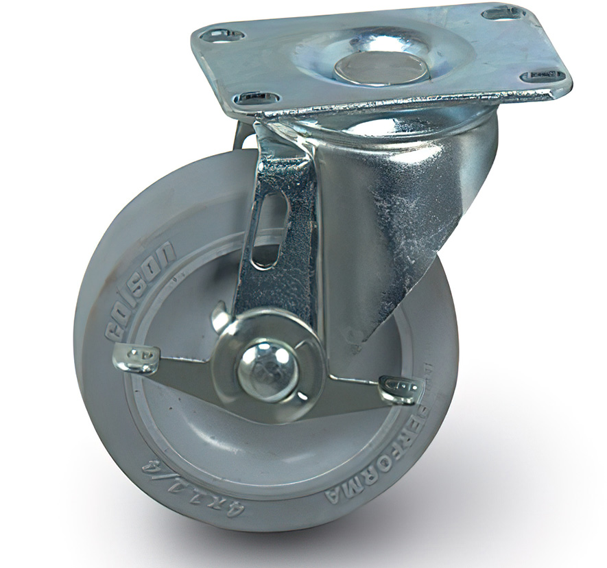 When heavy loads need to be rolled through quiet areas of a building, Performa casters provide smooth and silent load handling ability. Non-marking wheels prevent ugly scuffs on hard floors while a soft ride protects loads from possible transport damage. Refer to chart for caster specifications.