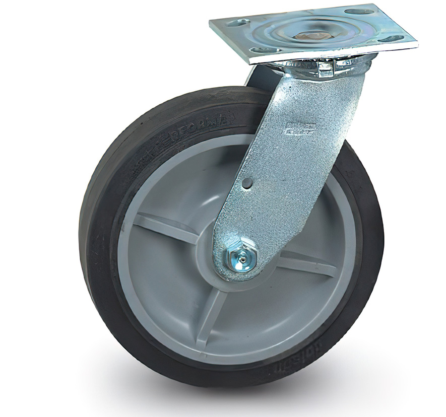 When heavy loads need to be rolled through quiet areas of a building, Performa casters provide smooth and silent load handling ability. Non-marking wheels prevent ugly scuffs on hard floors while a soft ride protects loads from possible transport damage. Refer to chart for caster specifications.