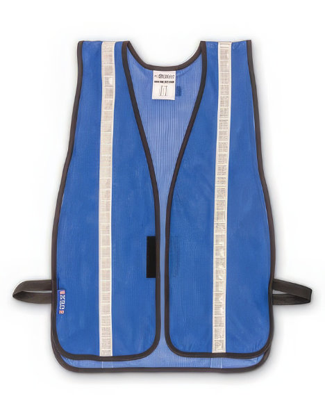 Letter Carriers must be visible to traffic while on their delivery routes. These Made in the USA Route Vests feature vertical reflective strips on the front and back, improving Mail Carrier's safety, especially when delivering after dark. New Carriers can also wear these while on their routes to help supervisors spot them. The lightweight 3.5 oz. polyester mesh material allows the vests to be worn in any weather condition without getting in the Letter Carrier's way. Each safety vest also features a velcro tab, ties on the sides, and two 1"-1.5" thick silver, vertical stripes. Available in blue and orange color options. One Size Fits Most