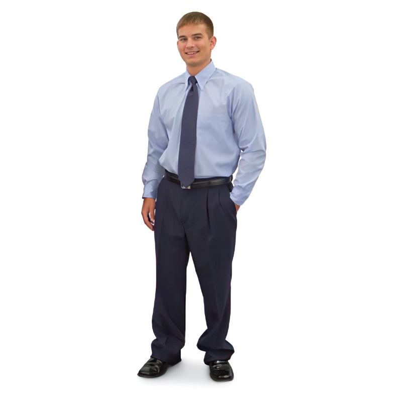 These Men's Window Clerk Trousers feature a 100% polyester construction with a tailored, pleated front. These navy Postal pants feature a comfortable, executive fly with brass zipper, quarter top front pockets, and double welt back pockets.