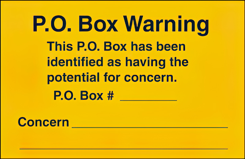 Use this PO Box Warning carrier form card to inform carriers, postal workers and customers of necessary precautions and procedures. This Letter Carrier card will get the attention of intended recipients. Carrier cards are sold 500 per box and measure 8-1/2" x 5-1/2".