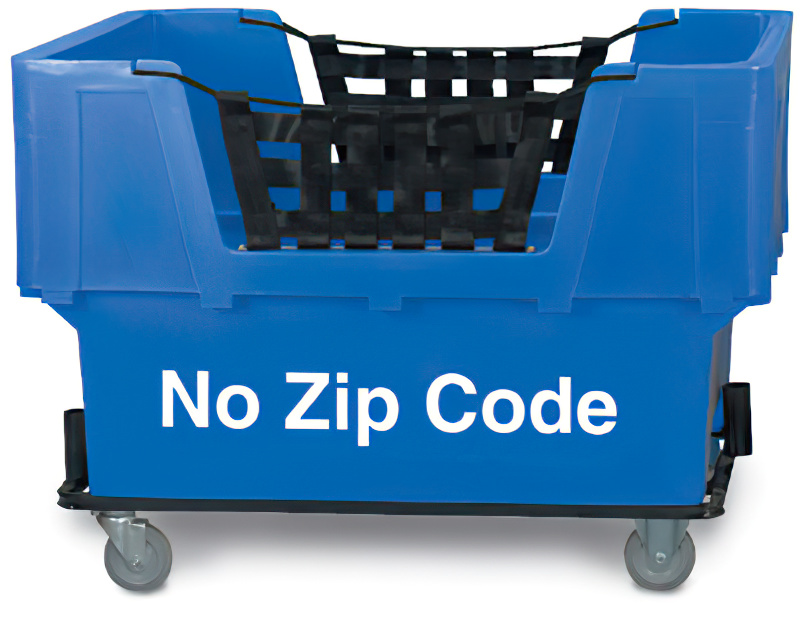 These imprinted container trucks are made to the same specifications as the 1046P cart. Imprinting on the side clearly marks the contents of the container truck. Nylon webbing can be detached making mail retrieval much easier. Trucks can be used on standard USPS dumpers. Features: High-density polyethylene; Steel frame with tow bars; Heavy-duty 4" non marking casters (2 swivel, 2 rigid); Detachable black nylon webbing; 2 sided screening. Model Numbers: N1026923 (Restricted Mail), N1026924 (Hazardous Mail), N1026925 (No Zipe Code), N1026926 (Track and Trace), N1026927 (No Postage), N1026928 (Dead Mail), N1026930 (Express mail), N1026931 (Damaged Mail).