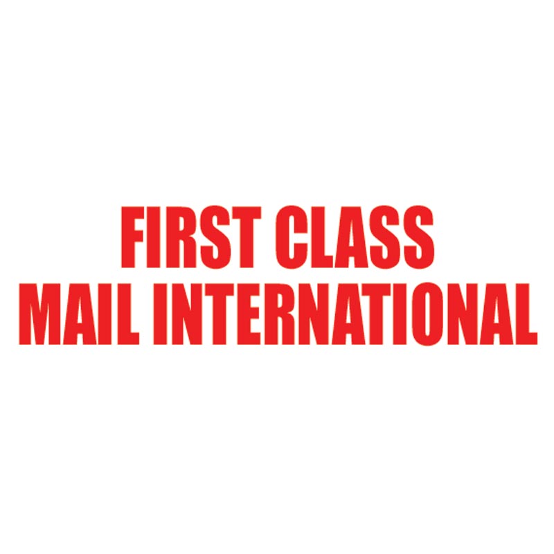 TYPE: STAMP. Stock Pre-Inked Stamp. IMPRESSION: "FIRST-CLASS MAIL INTERNATIONAL (FORMERLY ECONOMY)." IMPRESSION SIZE: 1/2"H x 1-11/16"W. INK COLOR: Black MOUNT: Made with an ergonomically designed plastic handle and features a retractable frame, eliminating the need for messy stamp pads and keeping stamps out of contact with your desk. Gives thousands of impressions before needing to be re-inked (). ACCESSORIES: Refill Ink, model numbers N1024685-N1024694. SHIPS: USPS.