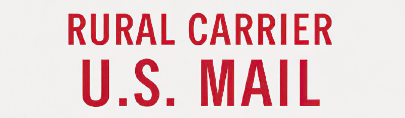 Easily attach this "Rural Carrier U.S. Mail" magnetic postal sign anywhere on your USPS vehicle. Each sign measures 6" x 20" and features bright red lettering on a white background. Ships USPS.