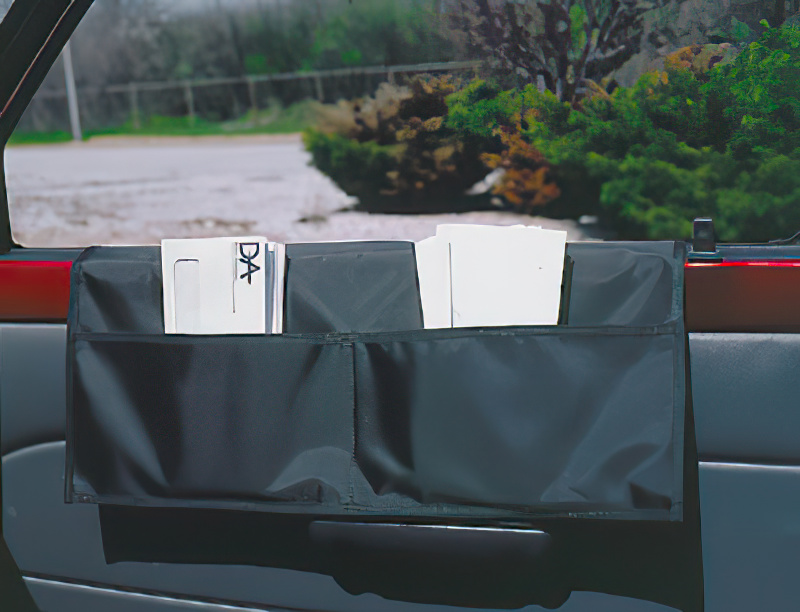 Postal Door Protectors extend 11" from inside door handle over window ledge and down door. Eight-inch magnetic sheeting secures the protector to USPS vehicle door. The magnetic sign also reads "U.S. Mail" to clearly identify your postal vehicle. The pockets are constructed of heavy-duty padded vinyl and feature two large pockets for mail and other necessities. Ships USPS.