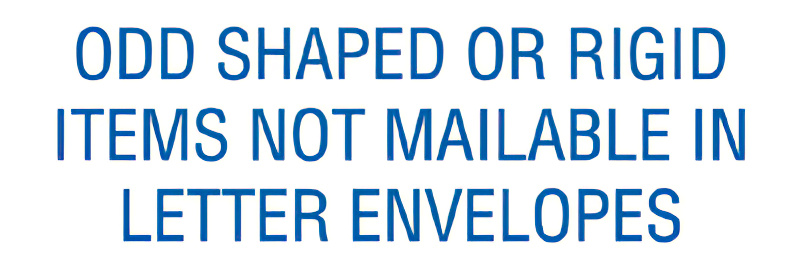 These "Odd shaped or rigid items not mailable in letter envelopes" labels have a professional look that provides a clear message to customers. These self-adhesive decals adhere to all surfaces including letters, boxes, and shipping containers. This is an inexpensive and time-saving alternative to hand writing messages onto parcels or letters.