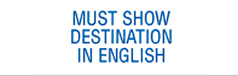 | 25644 | MUST SHOW DESTINATION IN E ... | STAND |