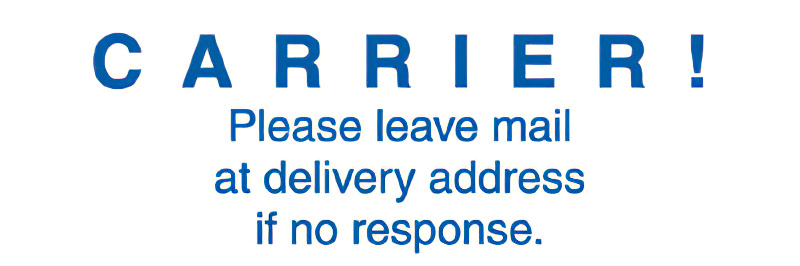 Labels read, "Carrier! Please leave mail at delivery address if no response."