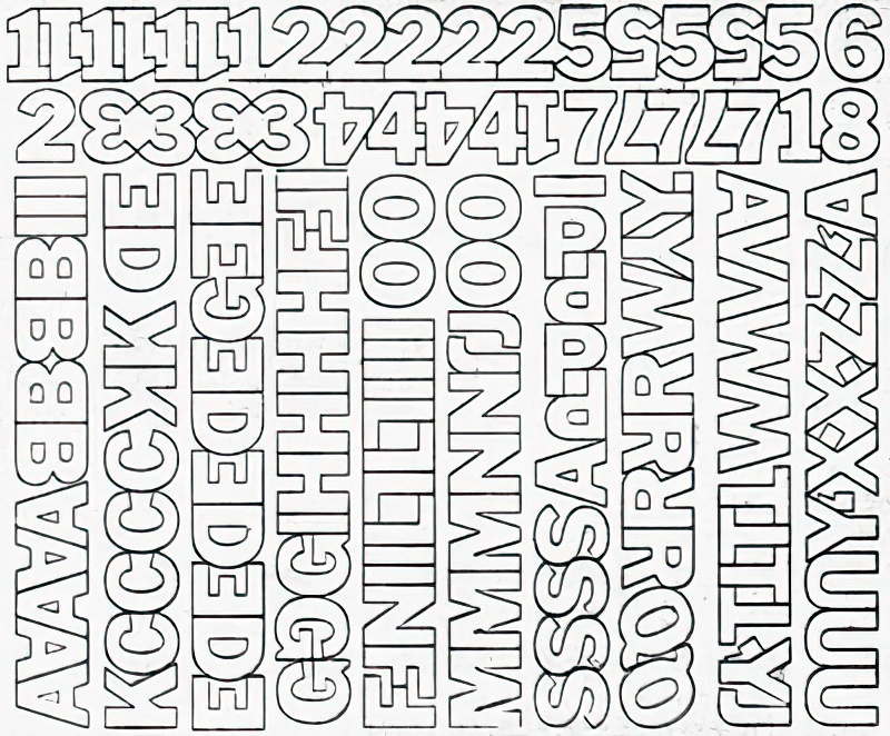 - 1/4" - 2" characters in Helvetica only